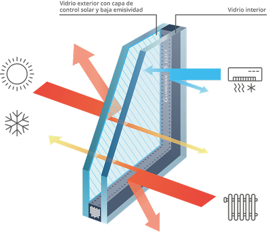 Composición ficha técnica del doble acristalamiento Guardian Sun®